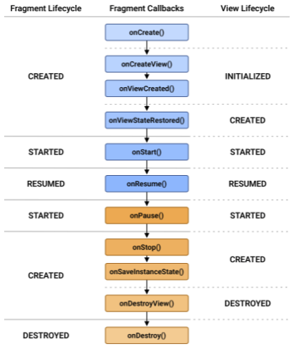 아래 사진은 Fragment와 Fragment View의 Lifecycle State를 보여줍니다.