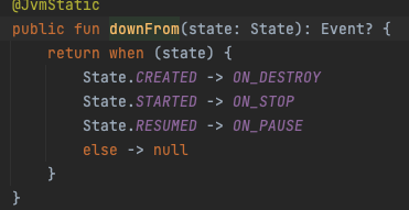 downTo는 우리의 예상처럼 STARTED에서 ON_PAUSE를 반환해주지만, downFrom은 STARTED에서 ON_STOP을 반환합니다.