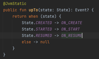위에 말했던 것을 다시 잘 생각해보면 이해가 쉬울 겁니다 ! Evenet 호출 뒤에 State가 따라온 다는 것, 즉 ON_START 이벤트 이후, ON_STOP이 불리면서 STARTED가 끝나는 시점!